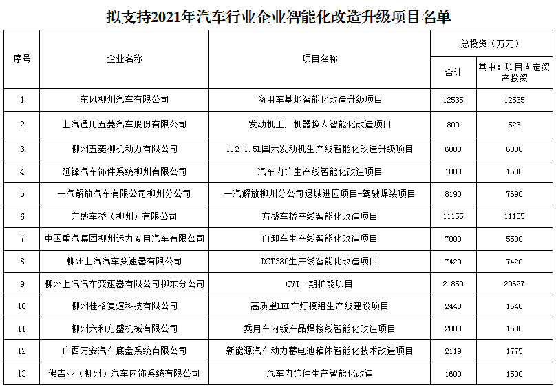 附件:擬支持2021年汽車行業(yè)企業(yè)智能化改造升級(jí)項(xiàng)目名單